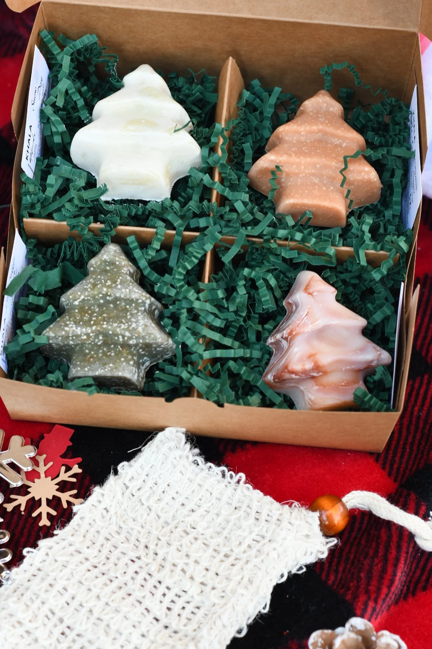 Minty Magic: organic coconut oil, apricot kernel oil, French green and red clays, peppermint, spearmint, and eucalyptus essential oils