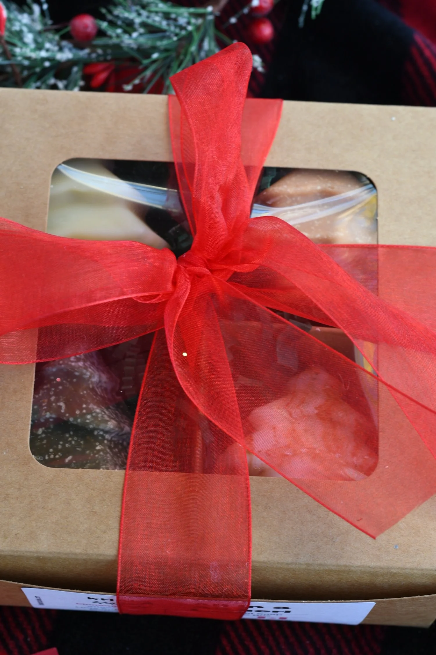 Cinnamon Sugar: organic olive oil, organic coconut oil, organic avocado oil, organic cane sugar, French red clay, cinnamon leaf and rosemary essential oils